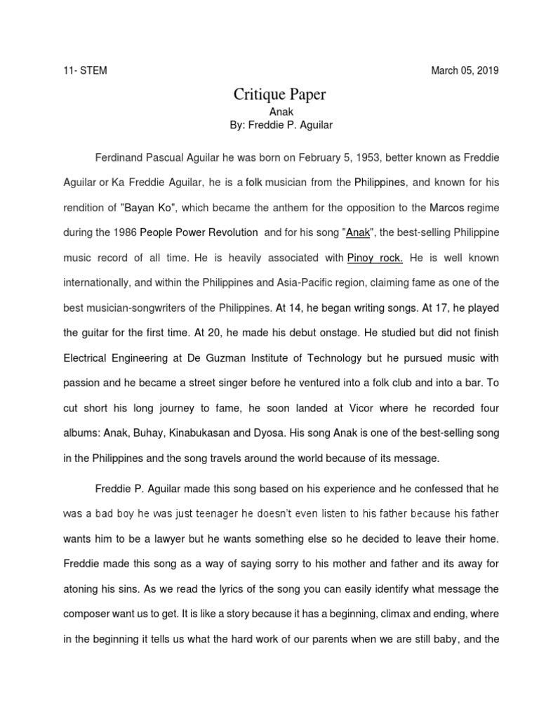 Critique Paper Tagalog Example - Critique Paper Entertainment General - Check spelling or type a new query.. Maybe you would like to learn more about one of these? Check spelling or type a new query. We did not find results for: